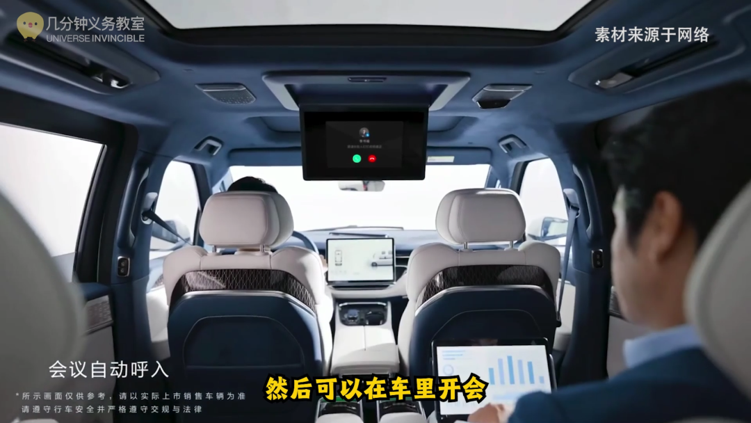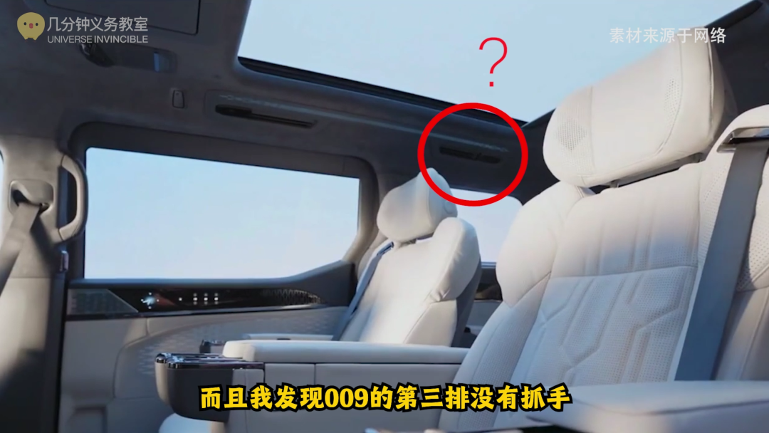 第三个第四个问题是关于座椅的,我给它们捏在一块说,这俩问题核心意思就是,我的第二排不只是舒服,我的第三排很牛。009的第二排所说的不只是舒服应该是多了一块吸顶屏还有摄像头,然后可以在车里开会,娱乐,这没有什么可讨论的,我觉得本质还是大沙发 。
