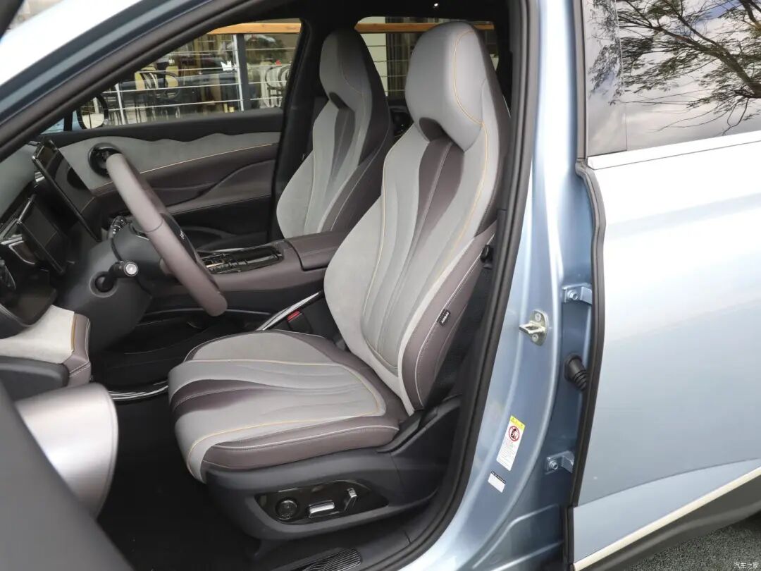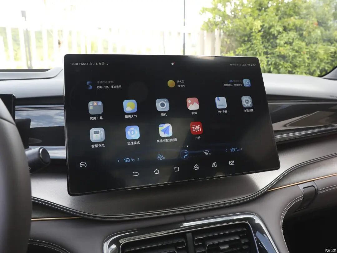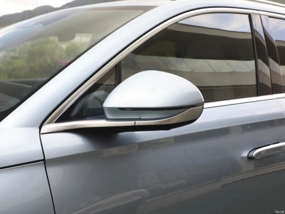 内饰整体上看上去比较大气,金属质感饰条搭配Alcantara,从两侧门板贯穿到中控面板,再拉伸车内横向视觉宽度。中控面板上部靠近前挡风玻璃的除雾风口采用与中置扬声器一体化的设计,其设计灵感来自军舰刺破碧波泛起的层层波纹。