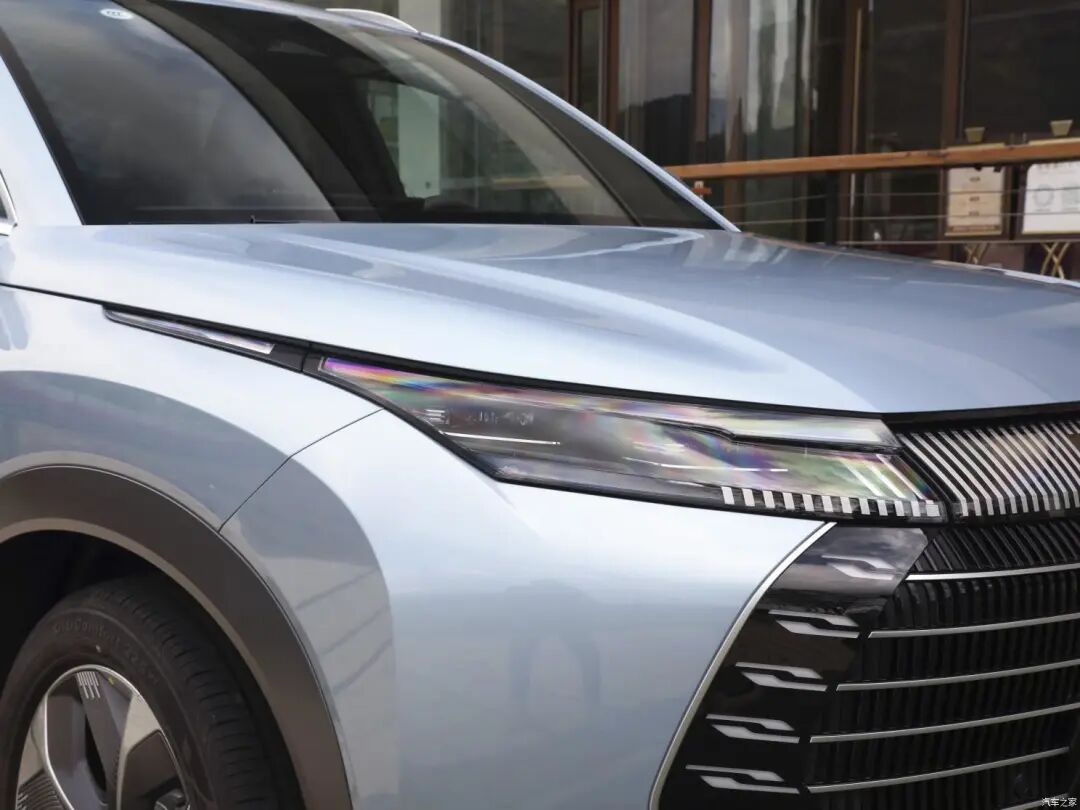 比亚迪护卫舰07在外观上与X DREAM概念车高度相似,横向的前格栅与驱逐舰05颇有几分相似,上方的贯穿饰条与大灯相连,并在内部镶嵌BYD新LOGO,配合竖状纹路打底,提升了前脸气场。