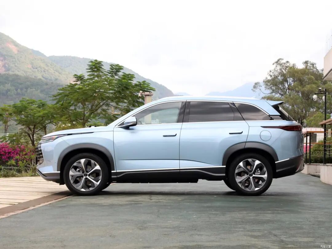 车尾层次简约分明,贯穿式尾灯融合立体式海浪造型,动感精致。D柱的竖状纹路以及翘起的后包围等,都为这款中型SUV增添了活力。