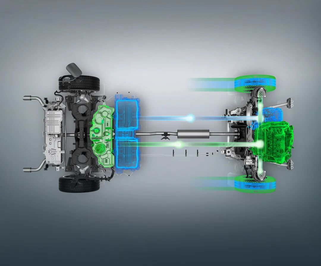 开启运动模式,动力响应和爆发力只增不减,发动机介入会更加频繁而且介入时机也会提前;四驱模式下,位于后轴的P4电机将会持续工作,P2前电机和发动机会按需提供动力支持,动力需求不大时车辆由前后轴电机驱动,而在急加速时发动机便会介入提供支持,四驱模式下的驾驶体验与混动模式差异不大。