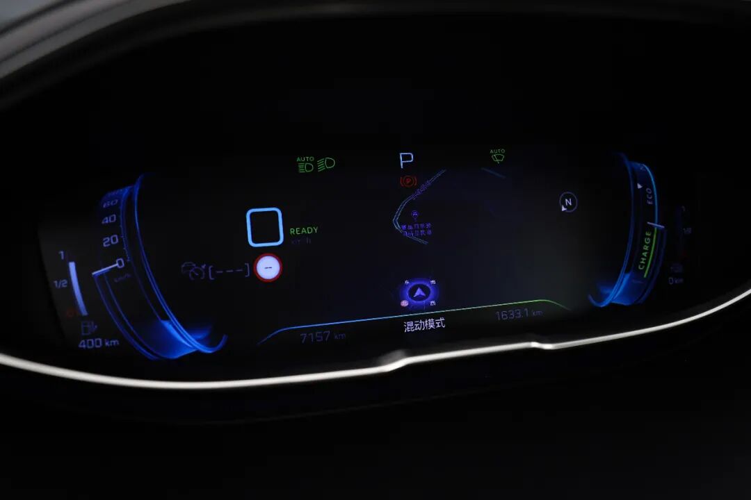 4008 PHEV车型方向盘尺寸较小,转向手感沉稳,指向性不错(在SUV车型中),给人比较运动的感觉。试驾车型提供纯电、混动、四驱和运动四种驾驶模式。