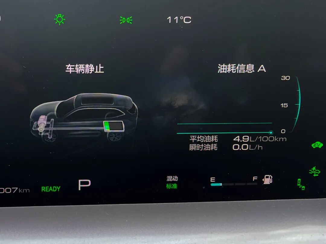 最后就是油耗表现了,在试驾期间车辆大多数时间处于馈电工况,大概行驶了近300km,包含城市道路、城市环路、高速工况,得到的油耗成绩为4.9L/100km。