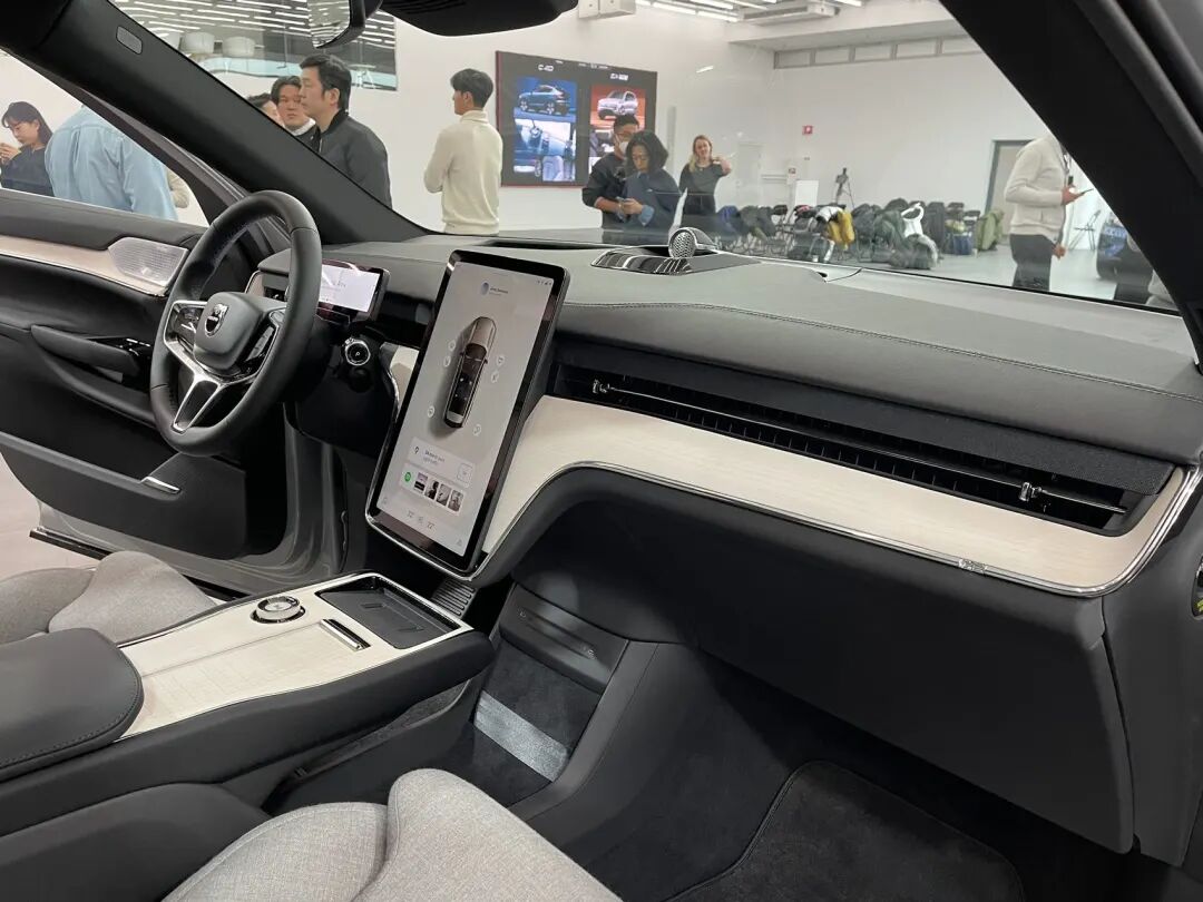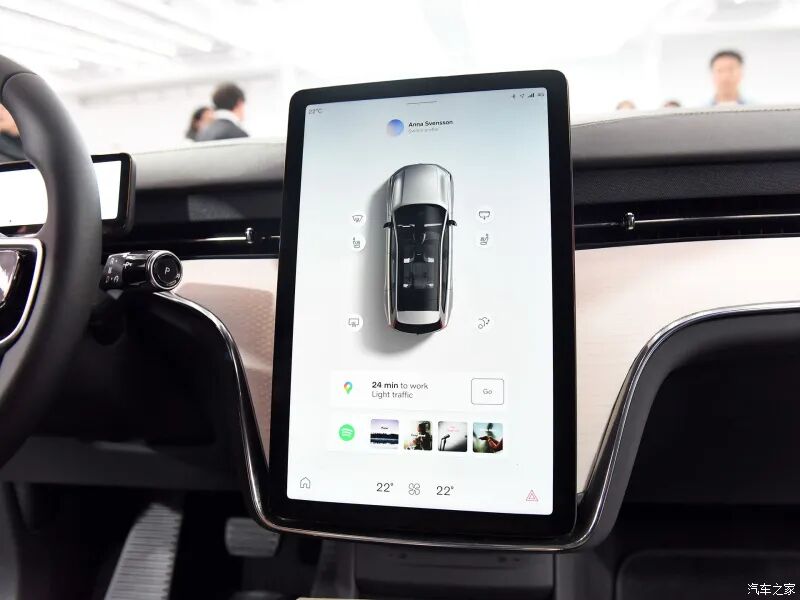 车内依旧是斯堪的纳维亚的简约风格,14.5英寸悬浮式中控屏非常抢眼,内置高通骁龙8155芯片,可以显示的功能相当丰富,支持OTA升级。另外,整个座舱内采用一种以PET塑料瓶以及松树树脂等回收材料制成的可持续供应的材料,名为 "Nordico植然皮革" 。