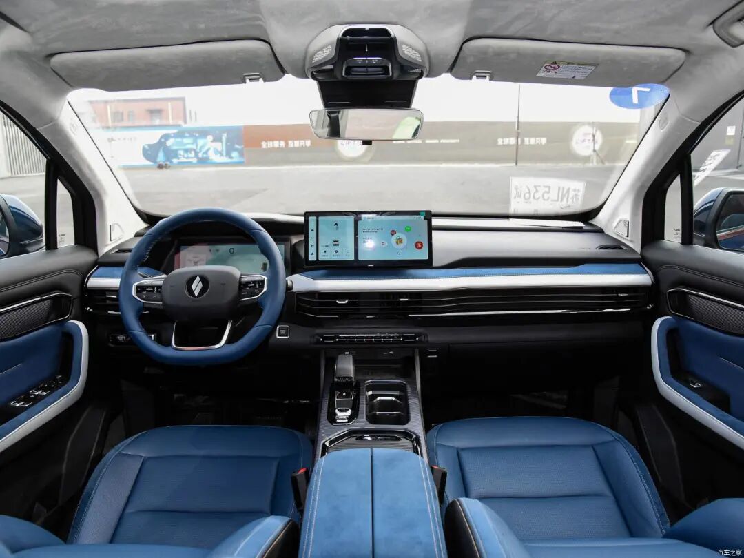 内饰部分,睿蓝9采用了全液晶仪表盘并搭配了双色的三辐式多功能方向盘,中控多媒体显示屏采用了悬浮式的设计,中控台配备了贯穿式的空调出风口设计,配合中央通道区域的电子换挡机构,使得新车的科技感得到很好的展现。另外,新车还将拥有6座与7座两种座椅布局,进一步满足消费者的用车需求。