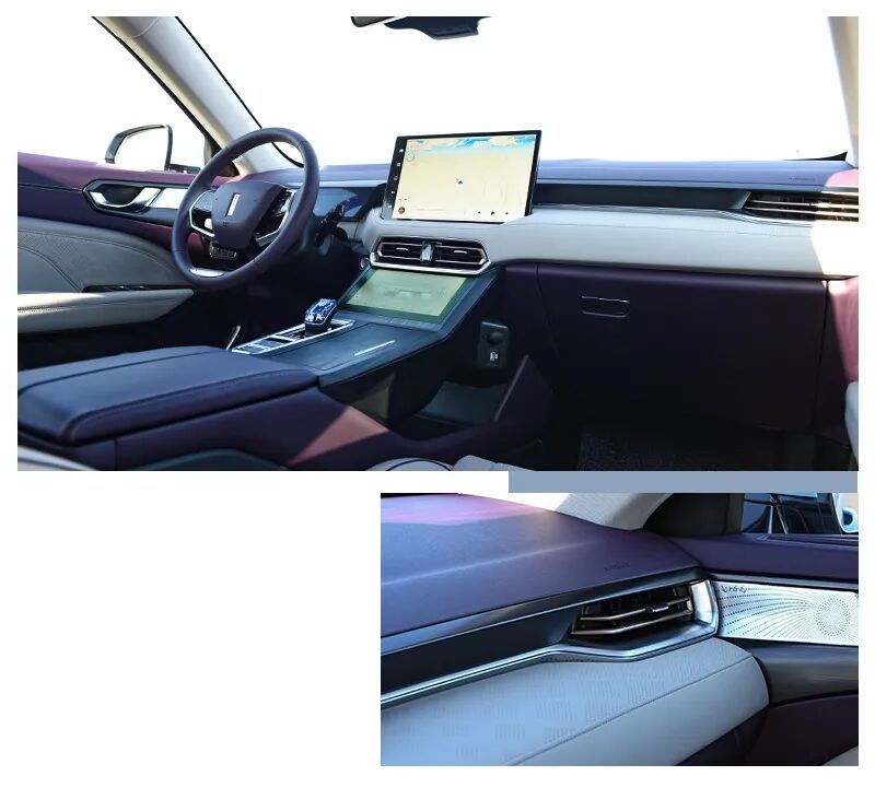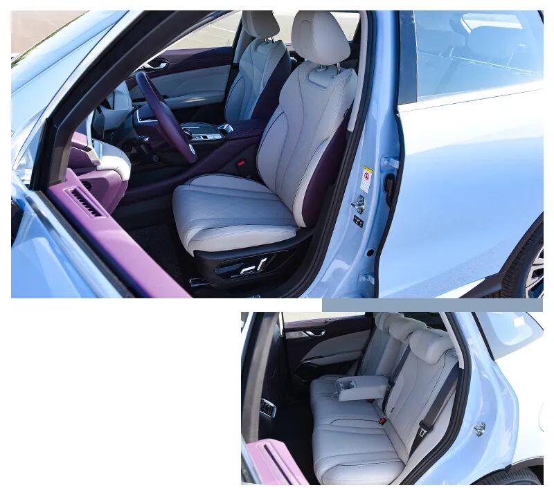 如果你希望一款兼顾科技、简洁、高级感的内饰,那么拿铁值得一看,三块屏幕、皮革包裹、紫/白拼色以及断层式的设计,这些丰富的元素足以满足你的审美。