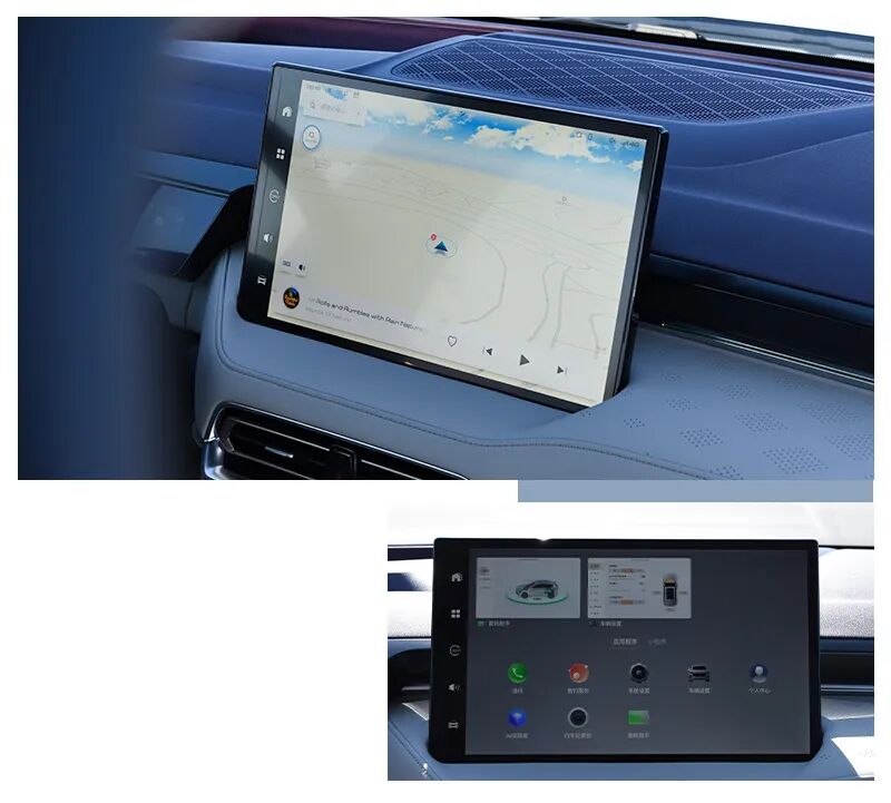 14.6英寸悬浮式中控屏幕屏占比极高,视觉效果非常震撼,屏幕的显示效果也足够细腻,车机系统支持第三方地图、音乐以及车辆设置等丰富功能。