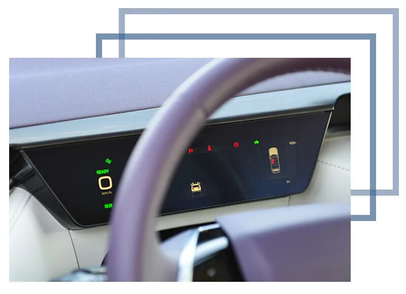 9.2英寸的液晶仪表采用带状设计,很好的贴合于主驾前方,深色的UI配合表面镀膜工艺,能够带来良好的易读性。