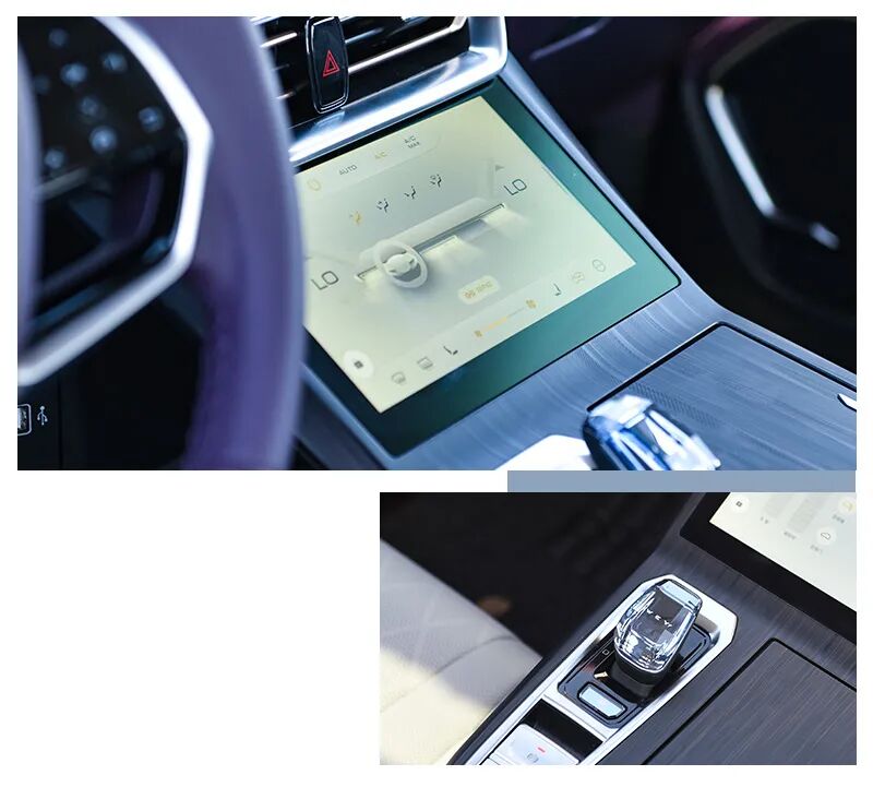 下方的空调控制区域也由一块带有倾斜角度的触控屏幕控制,屏幕表面做了磨砂处理,即使反复触控指纹也不会轻易遗留,同时新车还配备了座椅加热功能。水晶质感的挡把采用复杂的切割工艺,不同角度下观察,都能够观察到光芒,对于车内整体高级感的提升非常有帮助。