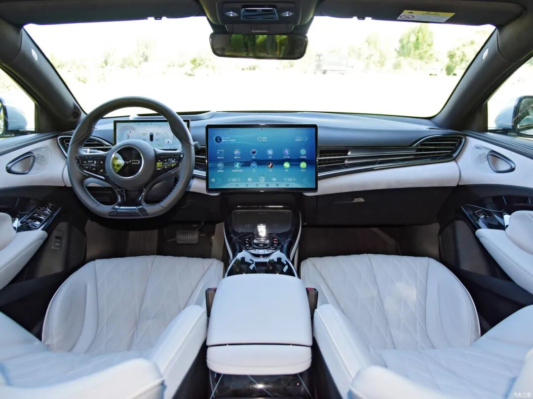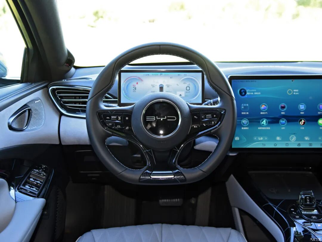 10.25英寸全液晶仪表和15.6英寸自适应旋转悬浮Pad清晰度流畅度一流,中控屏幕内置我们熟悉的DiLink智能网联系统,支持5G速联、智能语音交互等实用功能,关键是定位能够精准到“米”级!