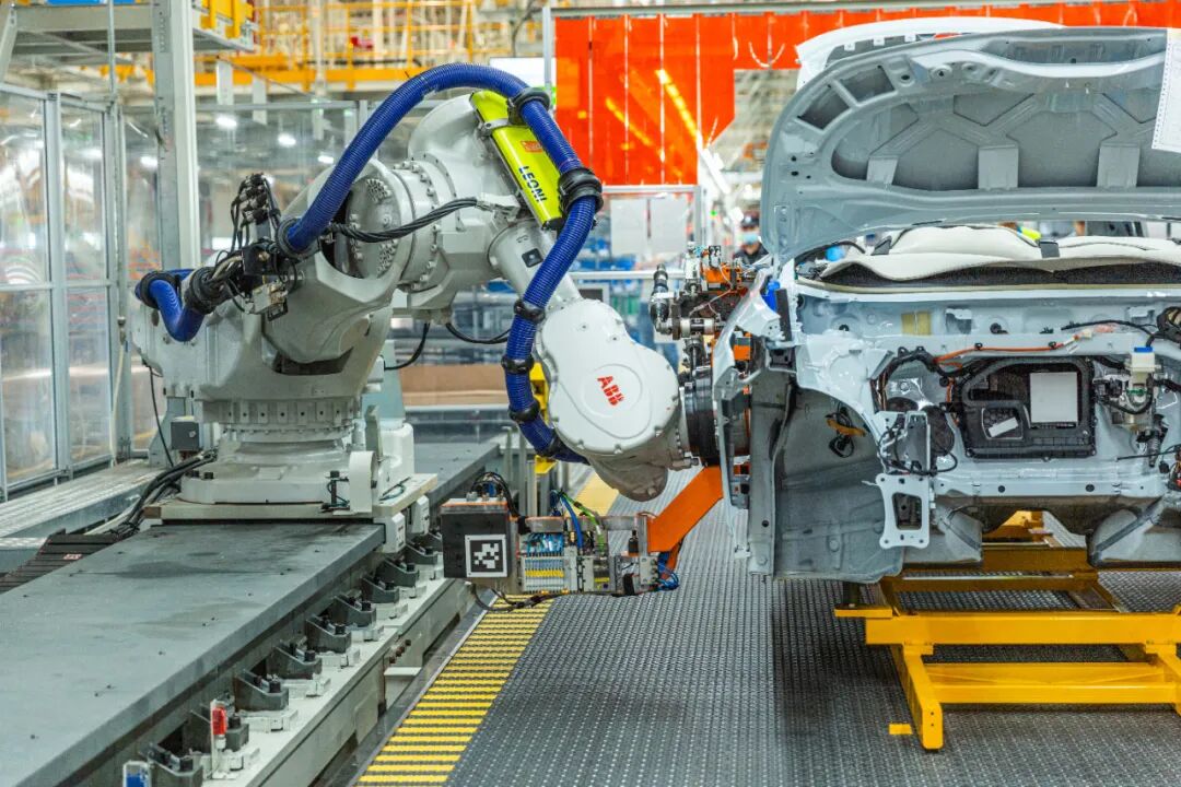 电池车间共有壳体和装配两条生产线,均生产MEB平台的两种铝质电池壳体和三款电池包,拥有超过138台机器人,壳体的生产线自动化率达88%,装配线的自动化率为78%。据官方介绍,整个车间只需要76名直接生产人员便可完成两款电池壳体和三款电池包产品的生产,从而降低人工成本,实现高自动化率。