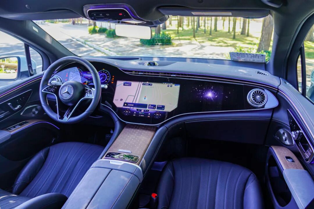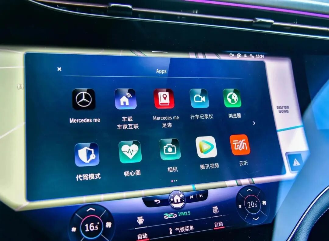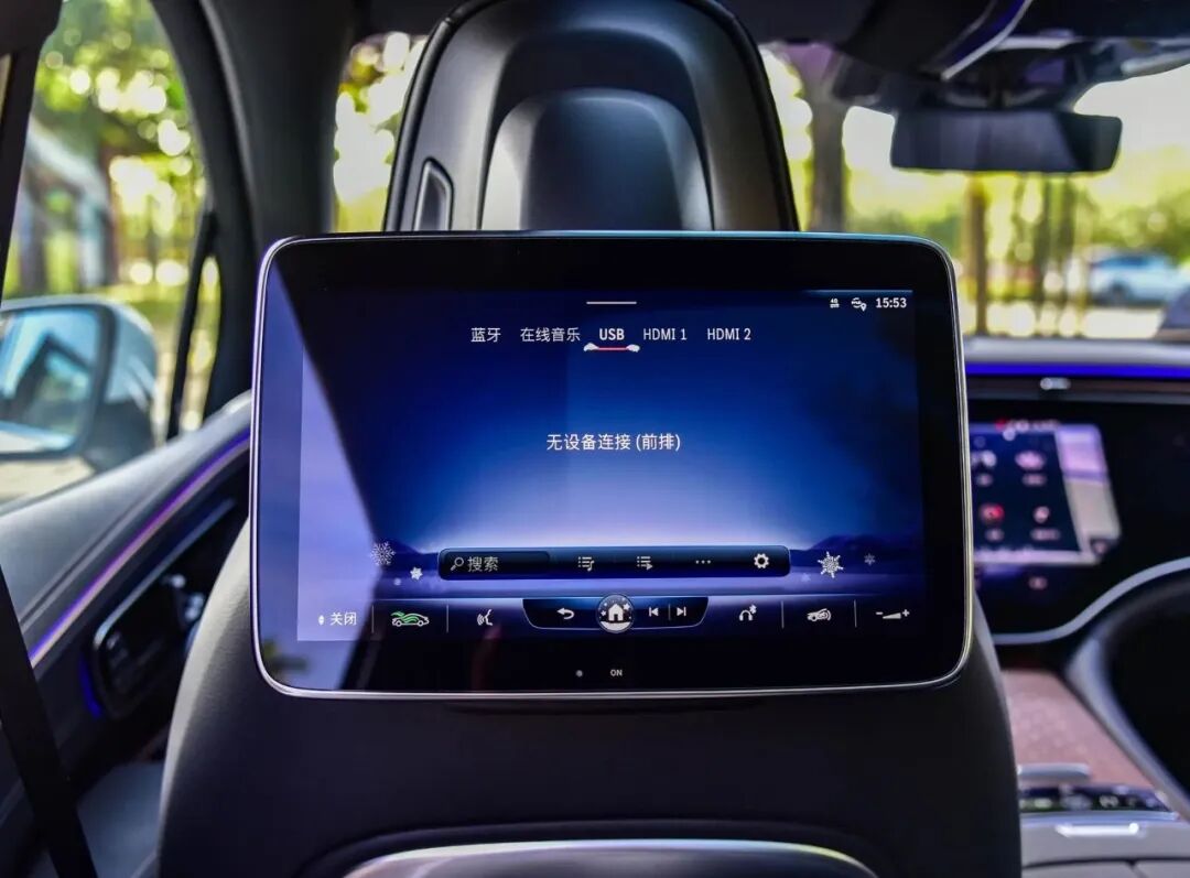 仪表和中控大屏就不过多赘述了,EQ家族的MBUX Hyperscreen在豪华品牌中称得上是翘楚,功能性与实用性双一流,硬件方面为8核心CPU和24GB内存以及英伟达芯片等。