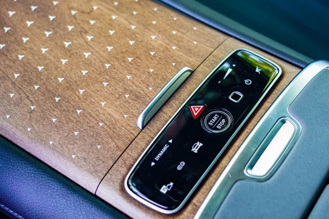 中央通道后方是常用功能操作区域,均为触控操作,实际使用感受与方向盘上的按键不相上下。饰板采用的是木兰木以及铝制星徽压制而成,工艺相当复杂,所带来的质感不言而喻。