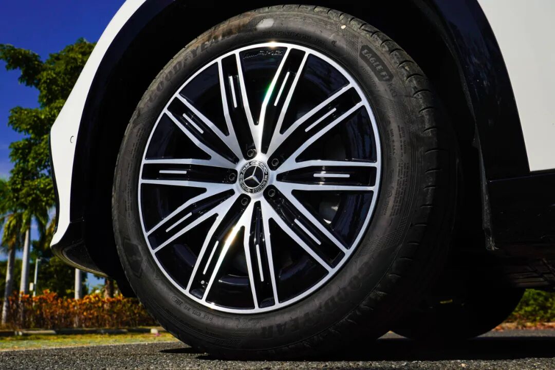 关于车侧其他细节,与EQS一致,包括侧面的玻璃水加注口、隐藏式门把手、位于三角窗部位的EQS标识。轮圈采用的是AMG款式,尺寸给到了21英寸,搭配的是固特异Eagle F1系列轮胎,具体规格为275/45 R21。