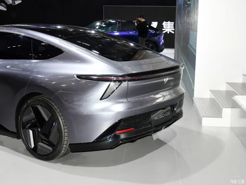 集度ROBO-02是一款纯电轿跑车。交互式AI像素灯、无车外门把手等细节设计都与ROBO-01一脉相承。随着ROBO-02亮相,集度也正式确立了“机器人美学”家族设计语言。
