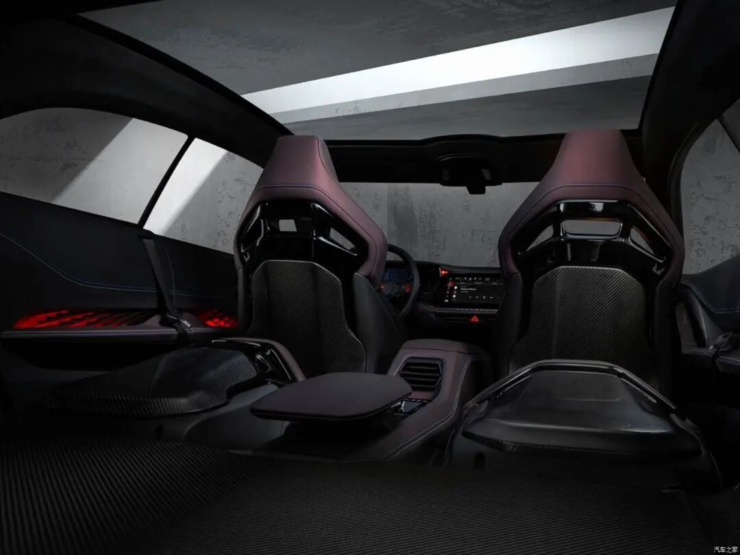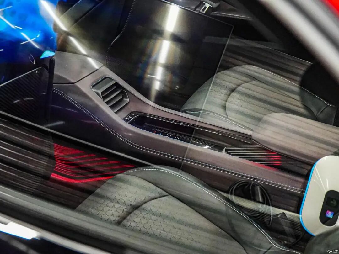 内饰设计很接近量产样式,传统的T形中控台,两款液晶大屏组成了内饰的主要部分。但是,包括氛围灯、轻量化概念座椅的出现,看上去依然很具科技感。此外,细节方面加入了更多Fratzog标识,也算是归属感的一种肯定。车顶全景天窗由一整块玻璃组成,但能否真正量产并未确定。