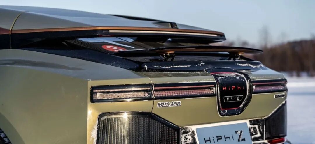 来到车尾,这或许是HiPhi Z最能体现概念车风格的部分,从车顶延伸而下的一体式尾翼非常漂亮,下方还加入了电动尾翼,可在车速达到80km/h时自动开启,优化空气动力学表现,也可在任何需要之时手动开关。