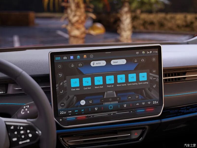 内饰方面,ID.7还将会延续大众ID.系列的家族式设计风格,中控屏尺寸将加大至15英寸,并内置最新HMI系统。仪表盘尺寸则会进一步减小,挡把依旧集成在转向柱上,在前风挡玻璃上则会继续配备AR-HUD显示功能。此外,新车在智能方面也将会有所升级,比如可以检测车外温度,当拿着车钥匙走近车辆时,可以提前开启空调系统预热或制冷。