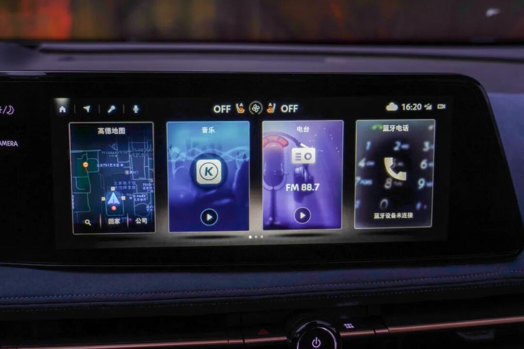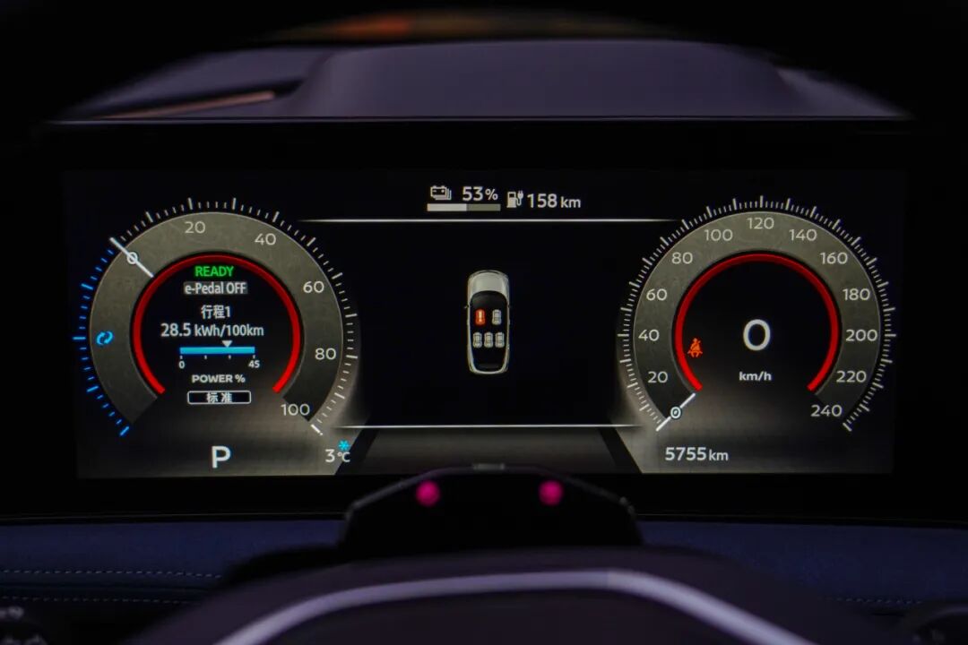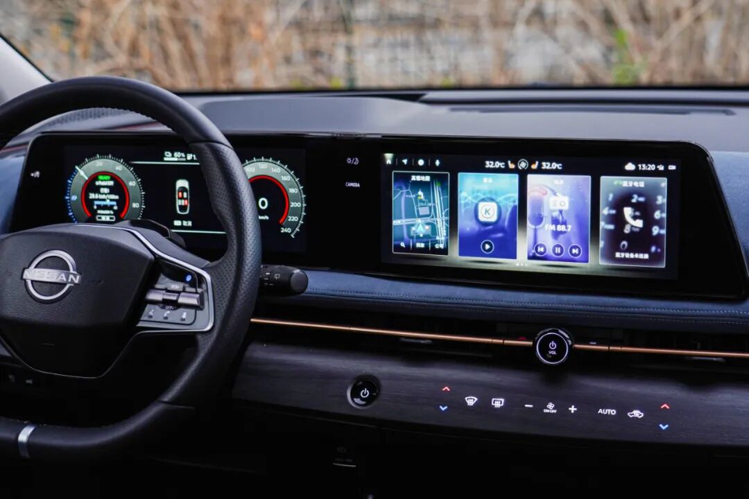 12.3英寸的液晶仪表UI设计简约, 可显示信息够全面,且可切换不同的菜单设置车辆信息。中控屏同为12.3英寸, 内置日产全新一代车联网系统,响应速度不错,可玩性较为一般,但该有的在线功能一样不落。此外,还支持远程控制车辆、远程实时监测等功能。