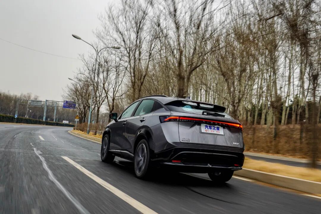 来到车侧,艾睿雅圆润饱满+溜背的造型可以说是老少咸宜、男女通吃了,几乎没有什么槽点可言,亦可称其为东瀛“Model Y”。设计元素尤为简洁,除贯穿车身的腰线外,再无多余线条,干净利落。此外,可以看到该车的轮眉和侧裙非常宽厚,平添了几分跨界车的意思。艾睿雅的长宽高分别为4603/1900/1654mm,轴距为2775mm,定位为紧凑型SUV。