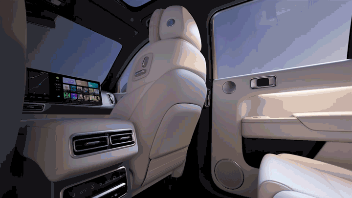 新车前/后排座椅均采用Nappa真皮材质,头枕上的小软枕非常舒适,且全系支持加热、通风、按摩。