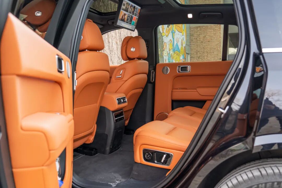 第二排座椅并不单单支持靠背角度电动调节,后排右侧的座椅不仅提供副驾老板键,还具备电动脚托,放下中央扶手后获得的体验并不输L8与L9的第二排独立座椅。