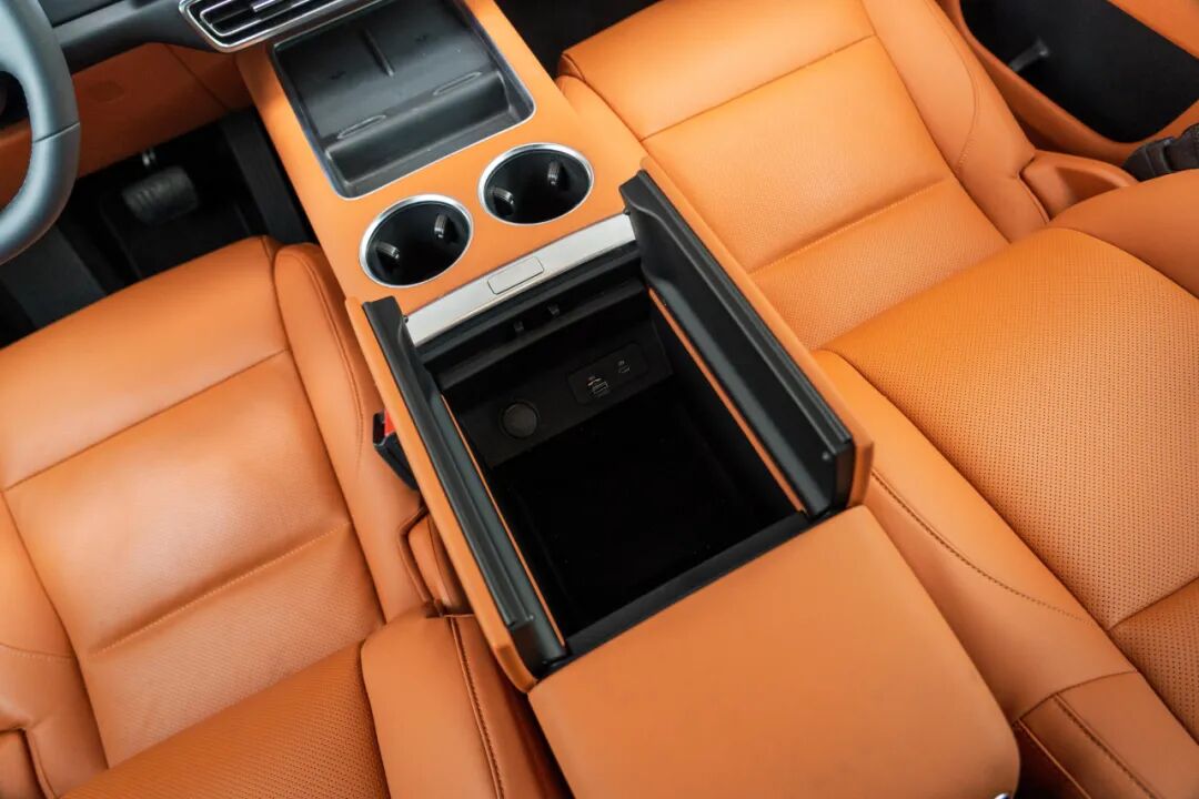 前排提供双机位的无线充电板,主/副驾乘客可以做到充电互不打扰,这一点还是很贴心的。其后方的中央扶手非常宽大,而且材质很是柔软。由于后排的中央扶手配备杯架,因此扶手箱后方的杯架被取消了。