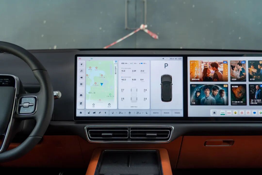 中控屏与副驾驶娱乐屏均为15.7英寸,并且与L8一样均采用LCD面板。其中,实拍的L7 Max搭载了两颗高通骁龙8155芯片,另外两款车型为一颗骁龙8155芯片,不过考虑到它们没有后排娱乐屏,一颗8155芯片驱动两块大屏应该也绰绰有余。