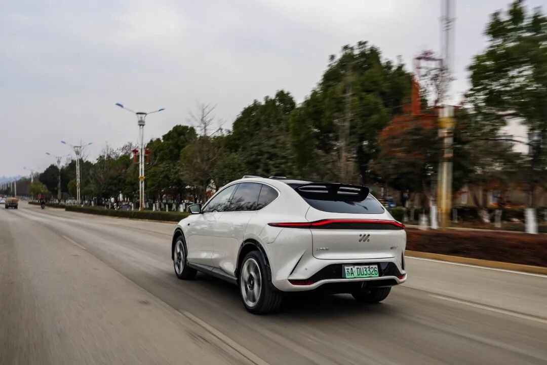 封闭式的前脸是新能源车型惯用的设计手法,搭配底部带有折线的前包围,运动感营造到位。