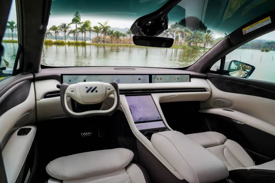 我们这台试驾车搭载了前后双电机,最大功率425kW,最大扭矩725N·m,官方给出的0-100km/h加速仅需4.5秒,就数据而言,够生猛,在同级别中也拿得出手。CLTC续航为625km,支持快充,补能速度不是问题。智己LS7开起来的第一感受并不是动力有多好或是操控如何,而是前方的视野奇好,一时间会有些不适应。