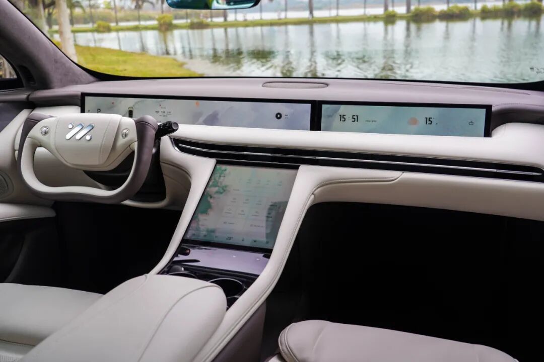 若以屏幕尺寸论胜负,那智己LS7有十足的胜算,满眼的大屏取代了物理按键,即便是“双闪”也未能逃过。上方的“带鱼屏”可以分别升降,功能上不必多说,毕竟是旗舰级SUV了,而最重要的点我认为是它不会遮挡视野。