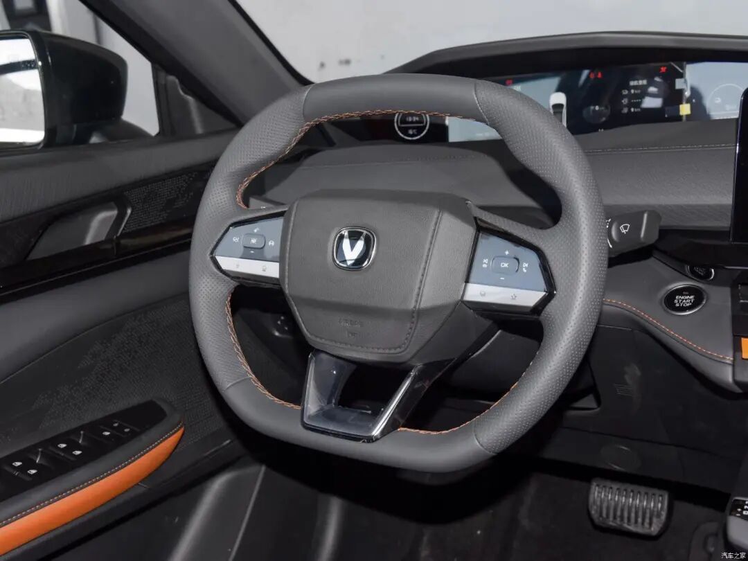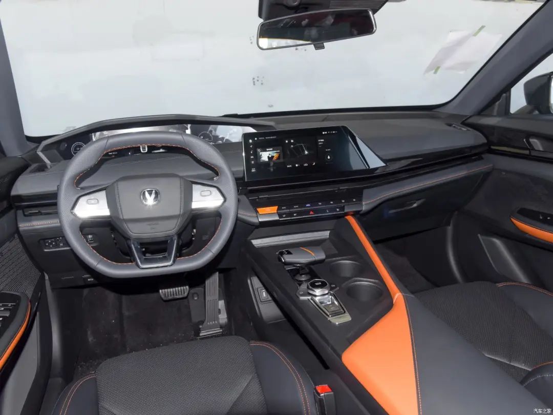 内饰部分,长安UNI-V 智电iDD基本与燃油版车型保持一致,别致的方向盘造型搭配细长的仪表盘,中央则是悬浮式中控屏,其下方保留着大量的物理按键。整体来看,新车中控台拥有鲜明的层次感,在当前市场,这套内饰设计足以称得上前卫了。