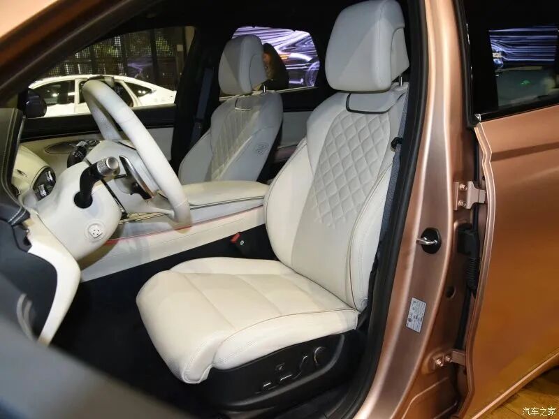 座椅采用天然皮革包裹,同时在头枕和侧面采用了含羊毛织物材质,舒适柔软且天然环保。靠背的菱形纹理与前脸“封闭中网”形成呼应,功能方面,前排座椅电动调节、加热、通风、按摩功能均有配备。
