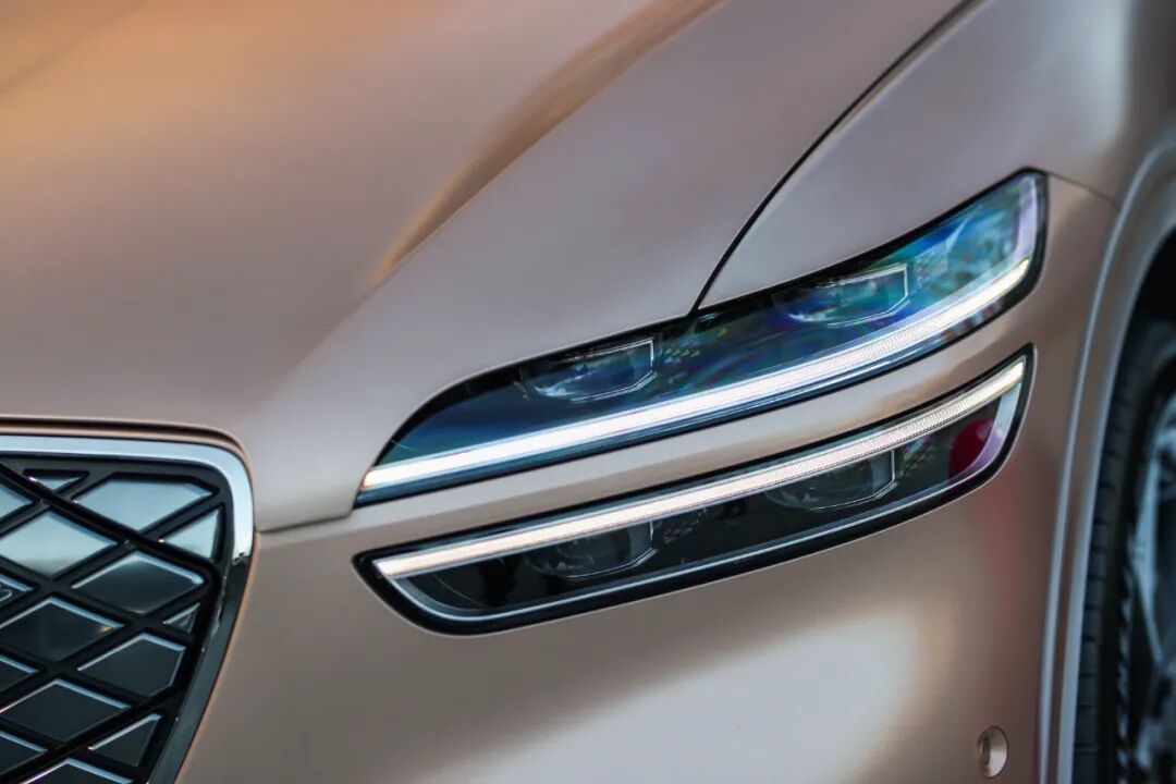 “灵感之翼”LED双线车灯是捷尼赛思的家族设计元素,具备自动头灯、自适应远近光、大灯延时关闭等功能。
