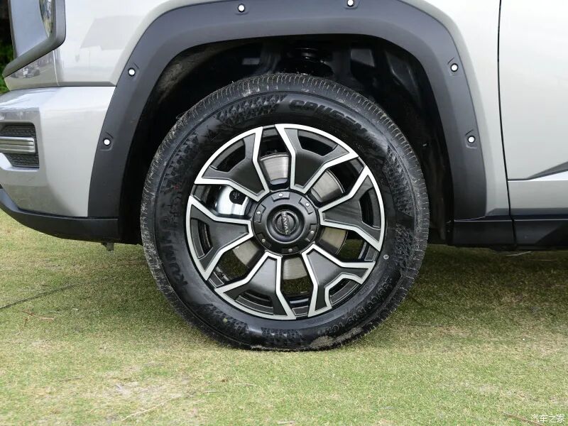 19英寸双色轮圈由多个形似字母Y的元素组成,而且还营造出了中央锁止轮圈的假象。轮胎采用锦湖CRUGEN HP71系列,规格为235/60 R19。