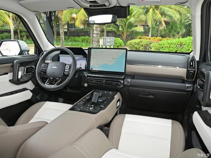 换挡杆区域加入了碳纤维纹理饰板,搭配外露的铆钉,带来一种时尚又狂野的既视感。电子挡杆造型与坦克300同款,挡杆四周设置有无线充电面板、电子手刹、自动驻车、泊车辅助、座椅加热、驾驶模式切换等功能控制按键。