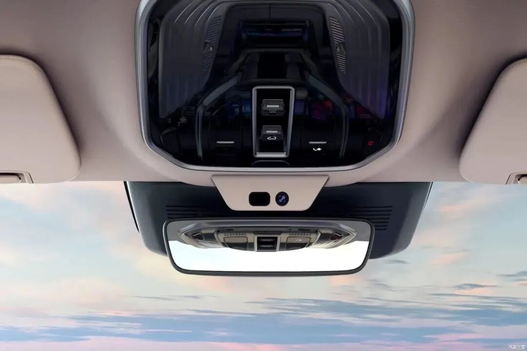细节方面,我们可以看到新车提供HUD抬头显示以及前排手机无线充电等功能。A柱集成了人脸识别摄像头,车内反光镜还配备有车内摄像头。另外,我们在前排还可以看到有多个音响扬声器,预计车内的娱乐影音效果也不会让我们失望。在用料方面,不仅采用了大量的皮质进行包裹,还通过拉丝铝材质以及木质装饰,提升了车内豪华感。