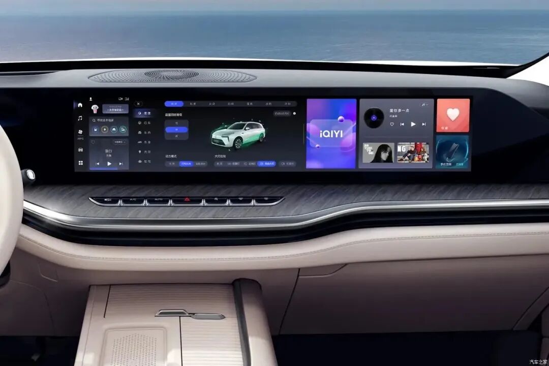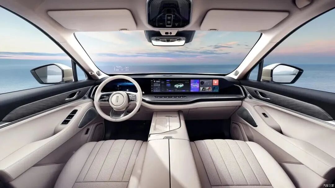来看官图,新车内饰采用全新的设计风格,贯穿中控台的三联屏设计十分抢眼,提升科技感的同时,也能照顾到副驾乘员的娱乐体验。同时,中控屏下方还保留了物理按键方便操作,空调出风口也巧妙地隐藏在中控台处,十分用心。
