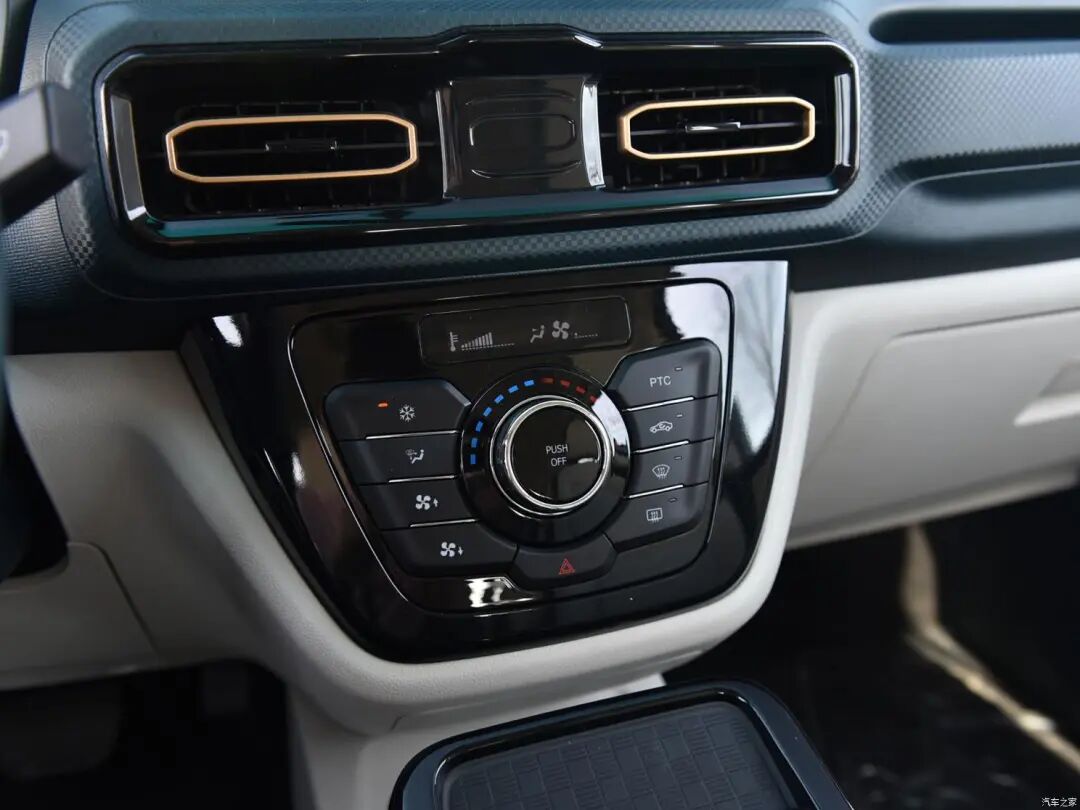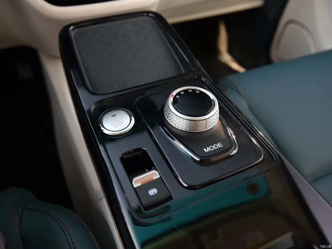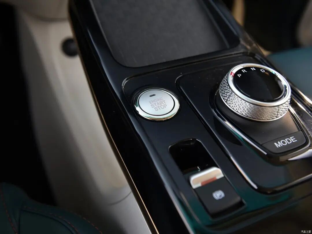 空调面板采用旋钮+物理按键的组合,操作起来较为方便,并且还带有后排空调出风口。副仪表台区域为前卫的悬浮式设计,上部设有一键启动和电子手刹等控制键。