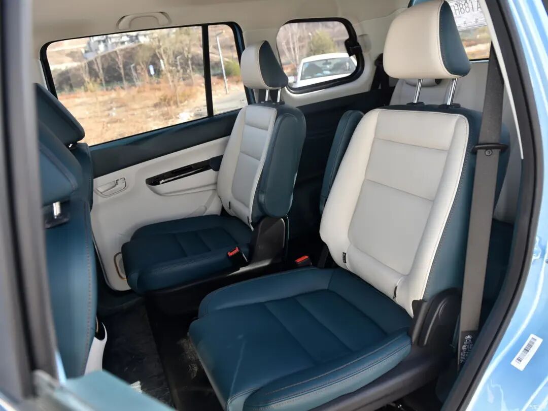 座椅方面,新车为2+2+3的7座版布局,采用仿皮材质包裹,主驾驶位座椅支持6向手动调节,乘坐舒适性尚可。第二排座椅可前后滑动,并配有ISOFIX儿童安全座椅接口和单侧扶手。第三排座椅可整体放倒和向前翻折。