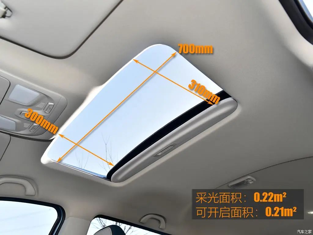 新车配备了一扇电动天窗,采光面积约为0.22平方米。储物空间方面,新车在前排位置,尤其是副仪表台区域的储物能力较强,二三排的储物能力比较一般。