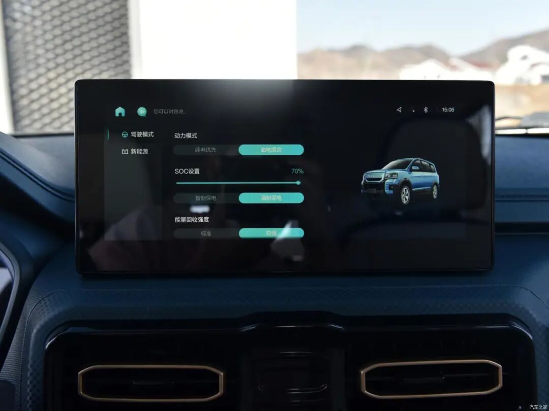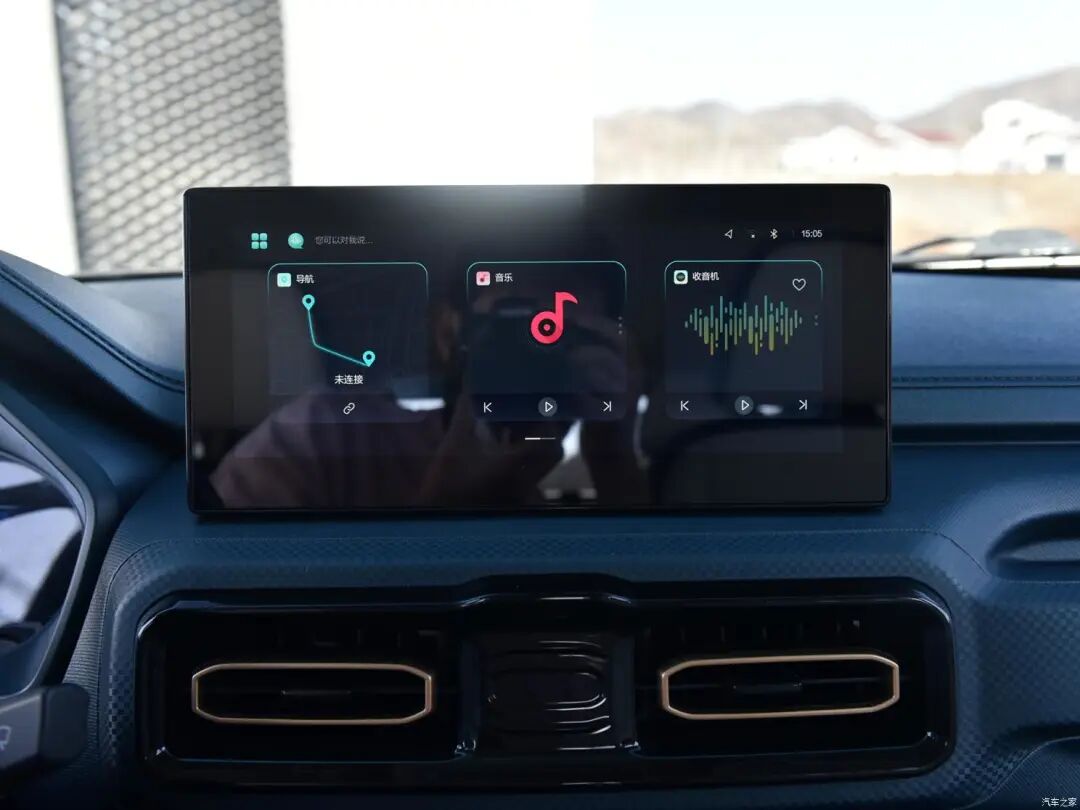 斯威大虎EDi还搭配了一块10.25英寸的悬浮大屏,具备手机互联、语音控制和车辆控制等功能,而导航功能及其它在线App的使用,则需要连接手机热点建立网络。