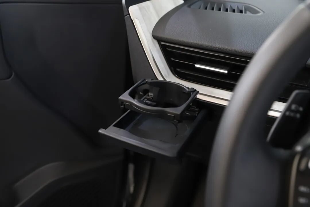 bZ3车内一派简约的景象,除了方向盘上的功能键之外,基本只保留了启动、旋钮换挡、手刹和双闪的实体按键。中控台横贯左右的饰条既能延展视觉宽度也增加了层次。隐藏式杯架在如今的新车上实属罕见,而且后方正对空调出风口可以保温/保冷。