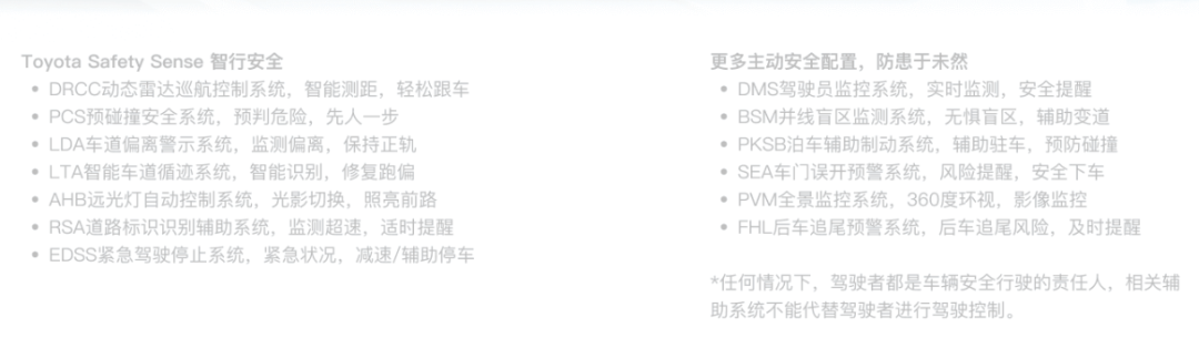 SAFETY SENSE智行安全系统和8个安全气囊,这些主/被动安全配置对提升行车安全有积极影响。