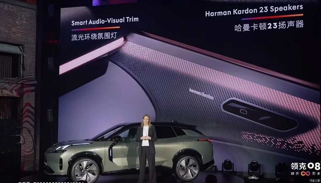 不仅如此,领克08还搭载了哈曼卡顿音响系统,在车身多处设置扬声器,并且提供了“欢迎”、“锁车”、“转向灯”、“开门警示”、“低速提示”音等多种功能的声效。