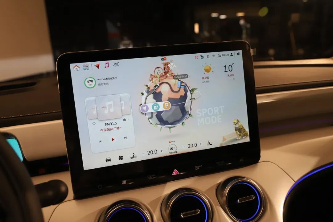 12.8英寸中控屏搭载“灵感星球”smart OS全场景数字生态车机系统,芯片为高通骁龙8155。功能方面,集成了车联网、设置、多媒体、爱趣听、语音助手、高德地图、全景影像、自动泊车、应用市场、微信、行车记录仪、爱奇艺、哔哩哔哩等功能,足以胜任日常使用。