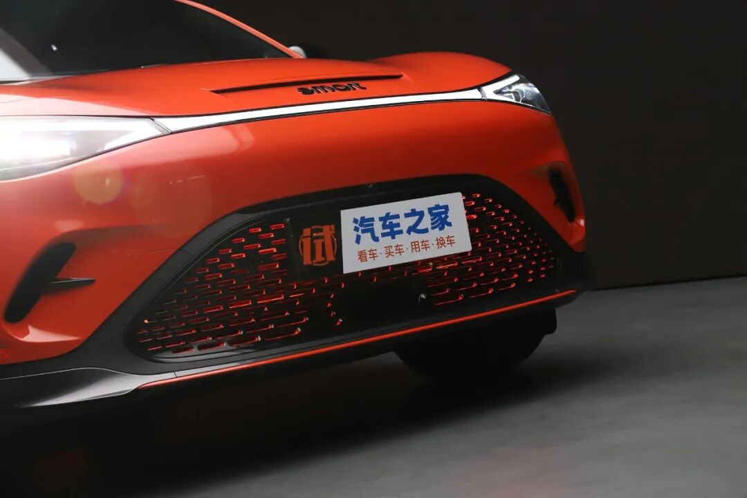 实拍这台smart精灵#3 BRABUS性能版采用光子橙涂装,而且加入了更多亮黑元素来表达运动感。品牌标识被黑化而且上方还加了一道横向开口,前包围也有运动化调整。格栅背景光的加入对提升科技感、前卫感大有裨益。