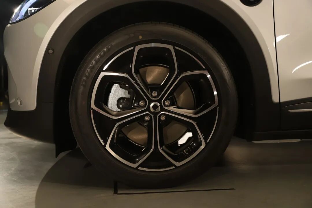 19英寸双色轮圈造型前卫,实拍车型采用规格为245/45 R19的邓禄普轮胎。