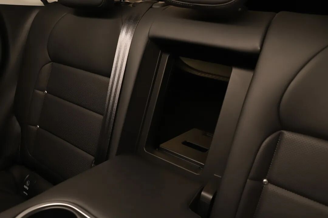 氛围灯营造摩登气息并没有把后排落下,前排座椅后方以及空调出风口均点缀有灯带。此外,在前排头枕背后设置品牌标识的设计并不常见。