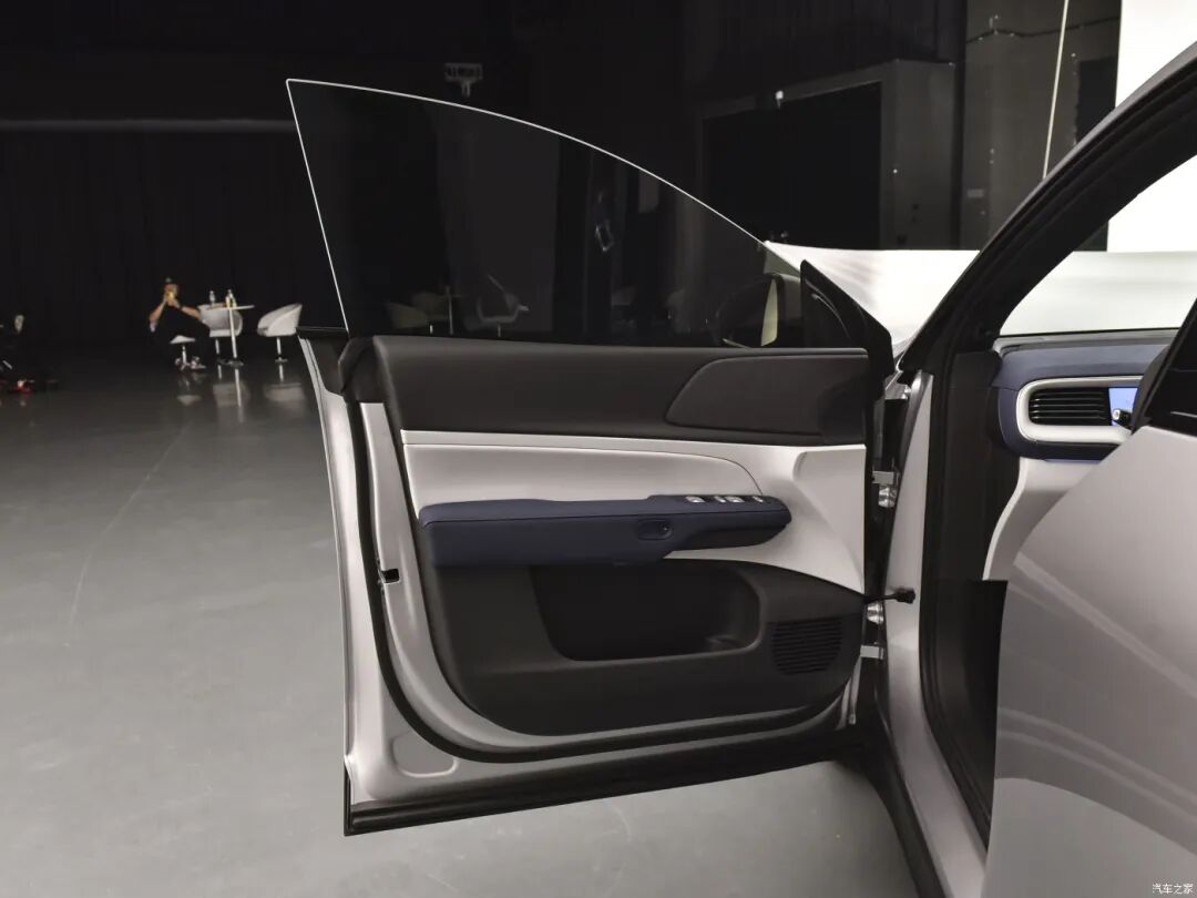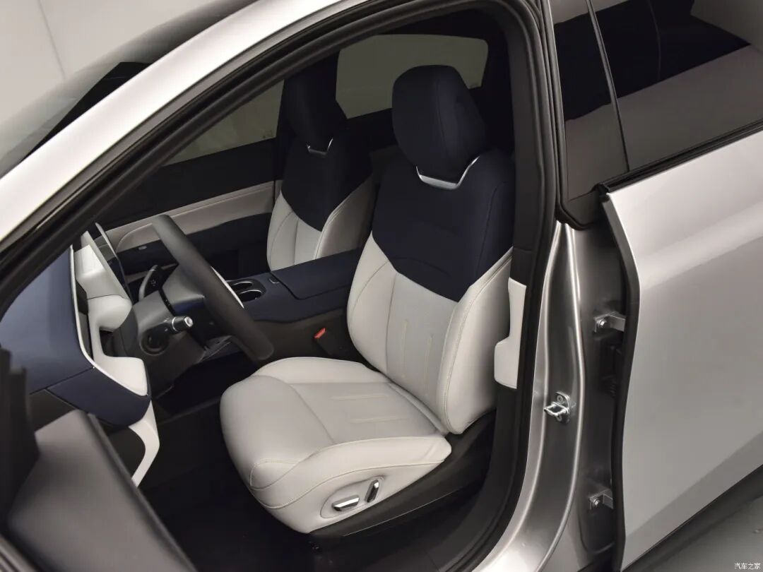 无框车门在如今的新能源车型上比较常见,是一项非常拉风的配置。实拍车型座椅采用两种颜色搭配,座垫长度以及靠背的包裹感都不错。